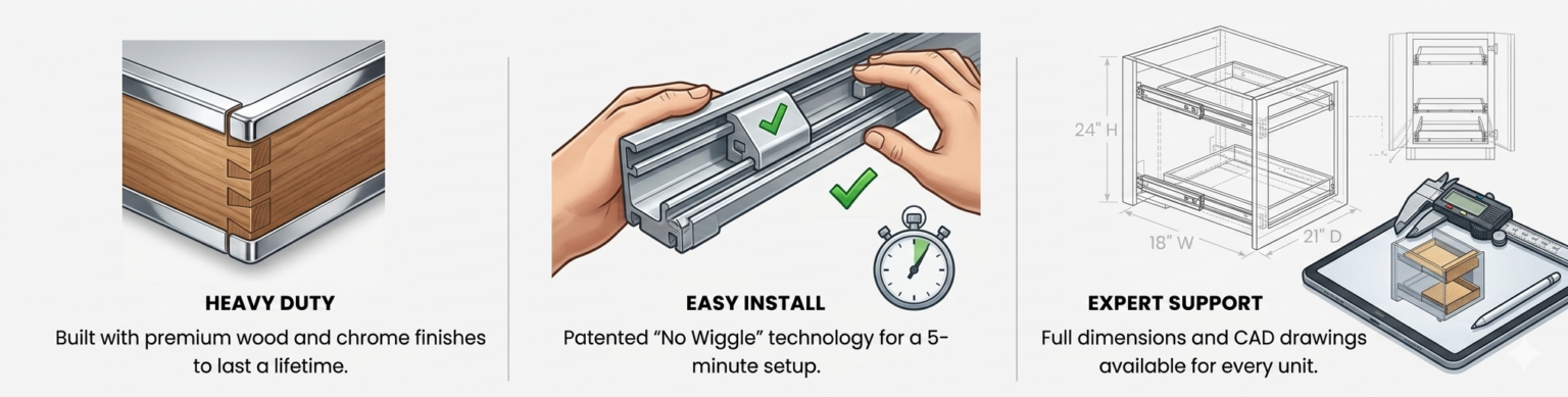 5″ No Wiggle Soft Close Base Cabinet Pull Out Shelves – Pre-Assembled