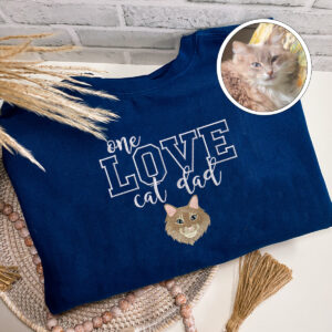 Custom Embroidered One Love Cat Dad T-Shirt – Personalized Cat Father Gift