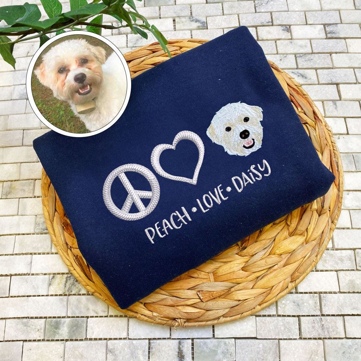 Discover our Custom Embroidered Peace Love Pet with Names Hoodie, the ultimate gift for pet lovers! Lovingly crafted and intricately embroidered, this Hoodie is a wonderful way to show your affection for your beloved pet. Perfect for Valentine's Day, Mother's Day, Father's Day, Christmas, or any special celebration, our pet Hoodie promises to bring joy. Indulge yourself or surprise a pet lover with this thoughtful and unique present.