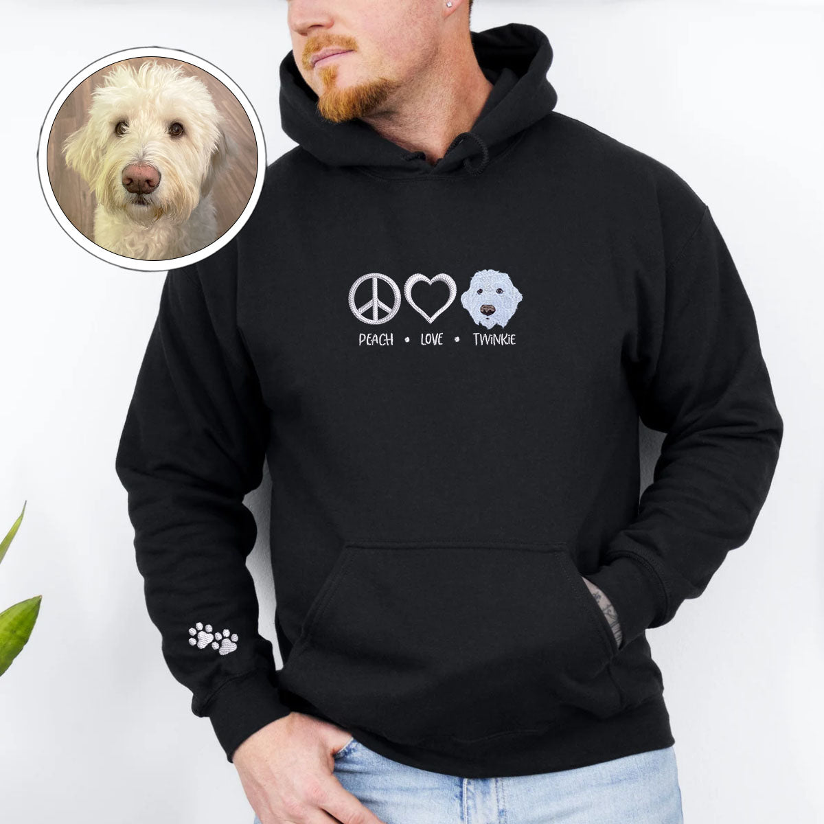 Custom Embroidered Peace Love Pet Hoodie with Names – Personalized Pet Lover Gift