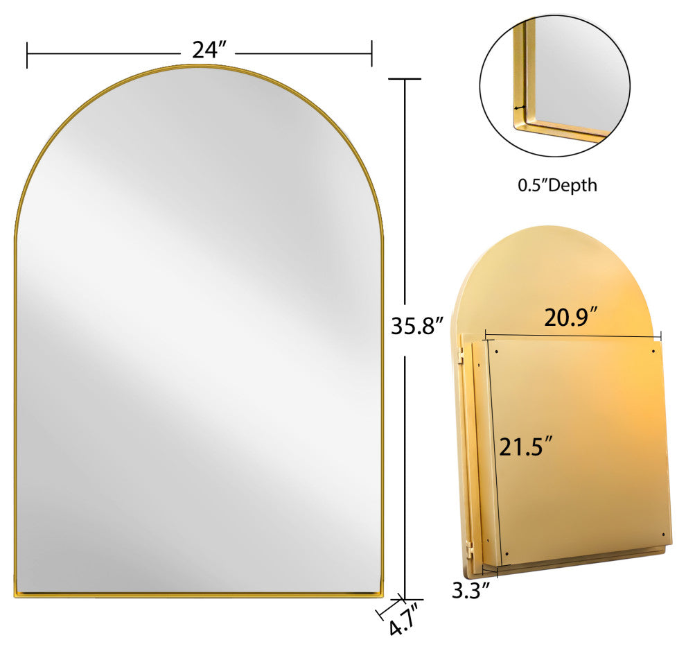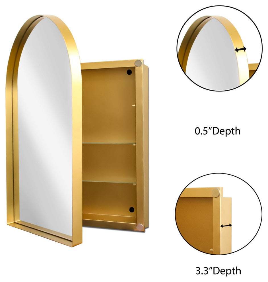 Elegant Arch Design: Upgrade your bathroom with this stunning 24 x 36 inch arched medicine cabinet. Its elegant design and mirrored surface instantly elevate the style of your space, creating a sophisticated and functional focal point. The sleek metal frame adds a touch of modern luxury, complementing various bathroom aesthetics.