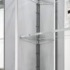 Three adjustable 8mm thick tempered glass medicine cabinet shelf.