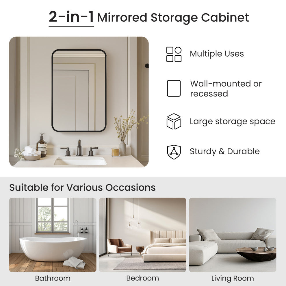 Talayuela Framed Medicine Cabinet with Mirror, Brushed Black Frame, 16″w x 24″h